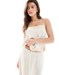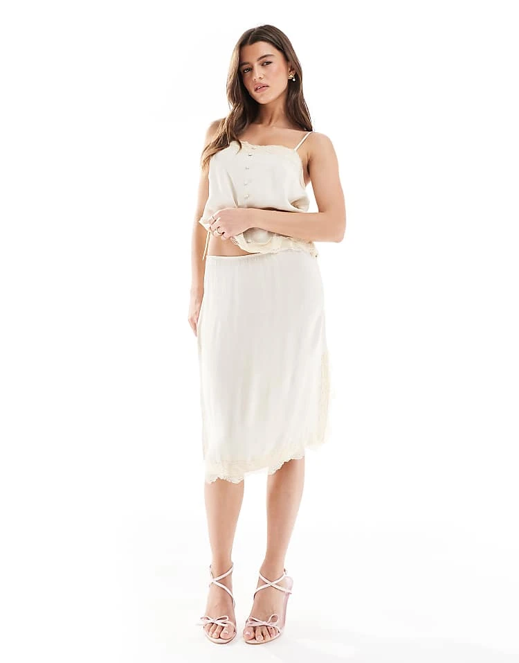 Pull&Bear Lace Trim Skirt Co-ord In Vanilla