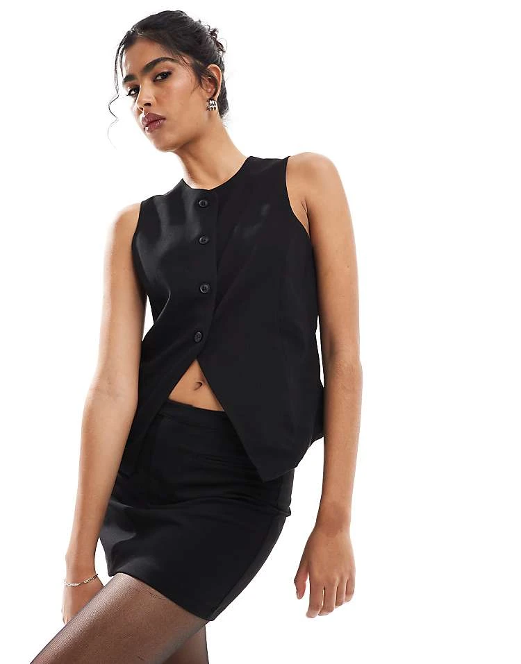 Pull&Bear Tailored Waistcoat And Mini Skirt Co-ord In Black