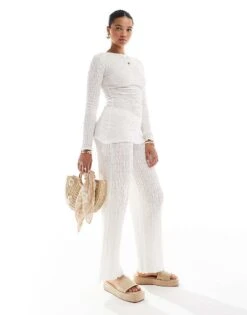 Pull&Bear Textured Long Sleeve Asymmetric Top Co-ord In Ecru